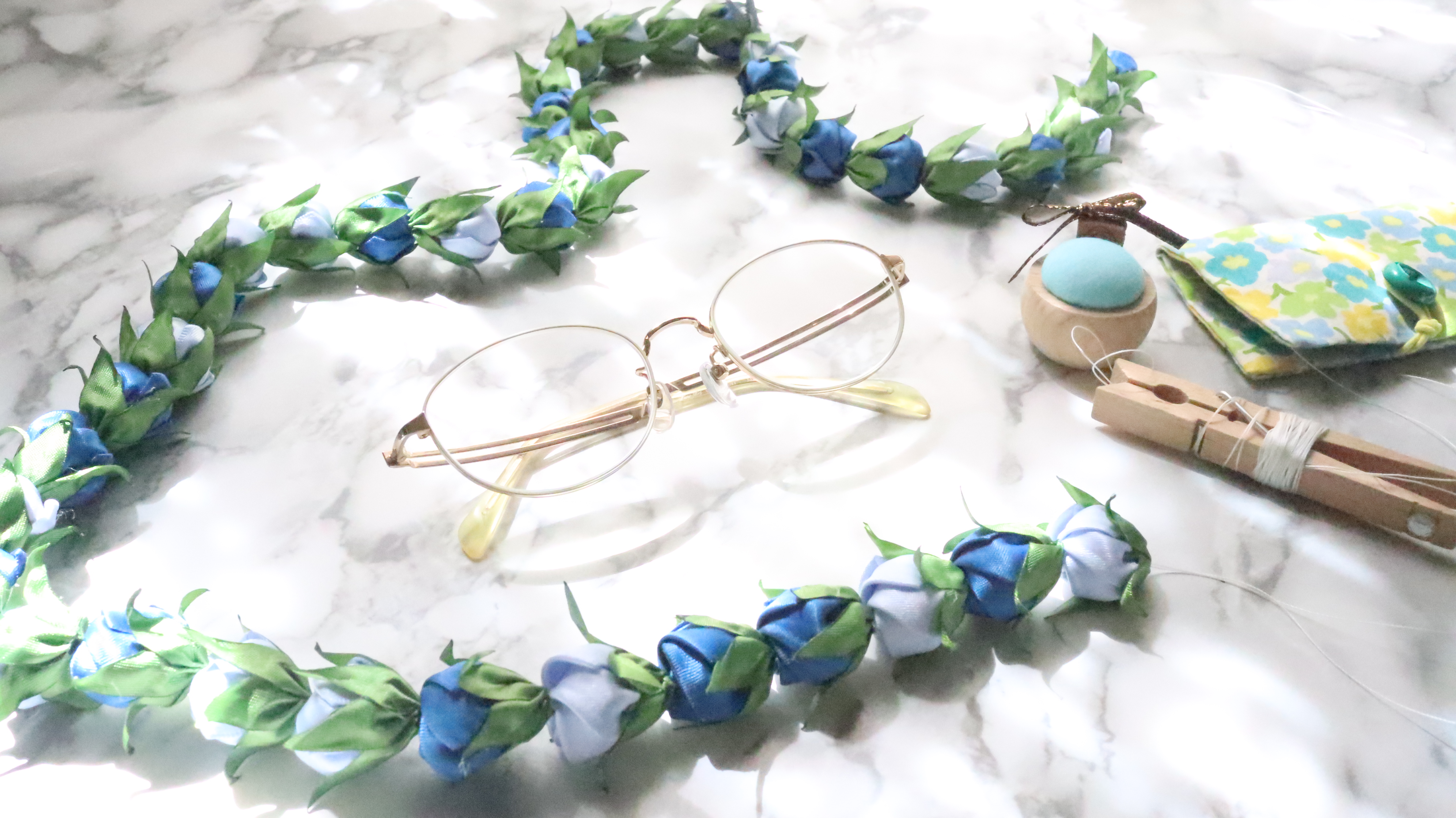 第一歩は、縫いやすい針、よく切れるはさみ、丈夫なリボンレイ用の糸など優れた道具を揃えるところから始めましょう。 -
