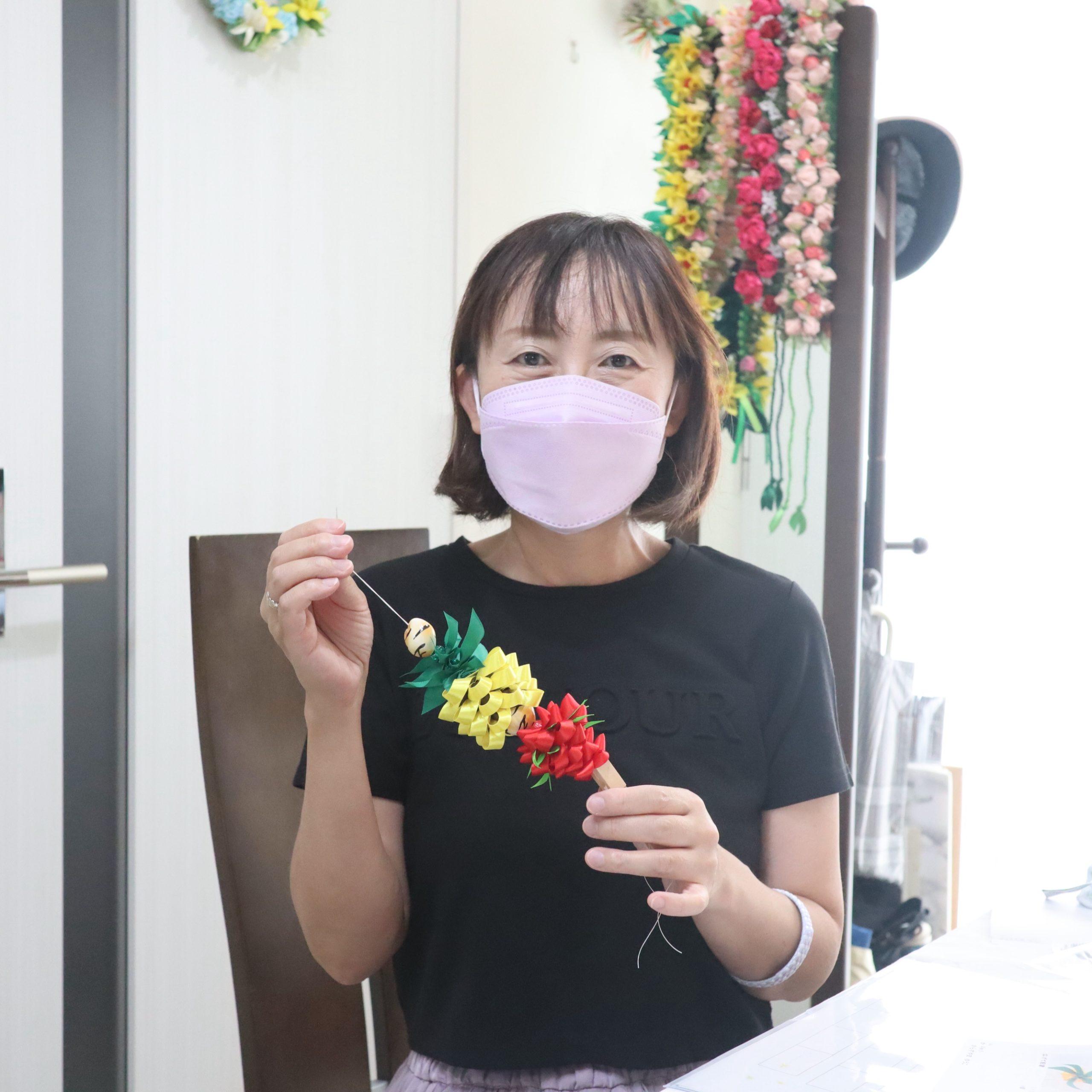 スイートフラワーリングピロー|リボン チャーム (モアナコア)|リボンレイ 教室 東京