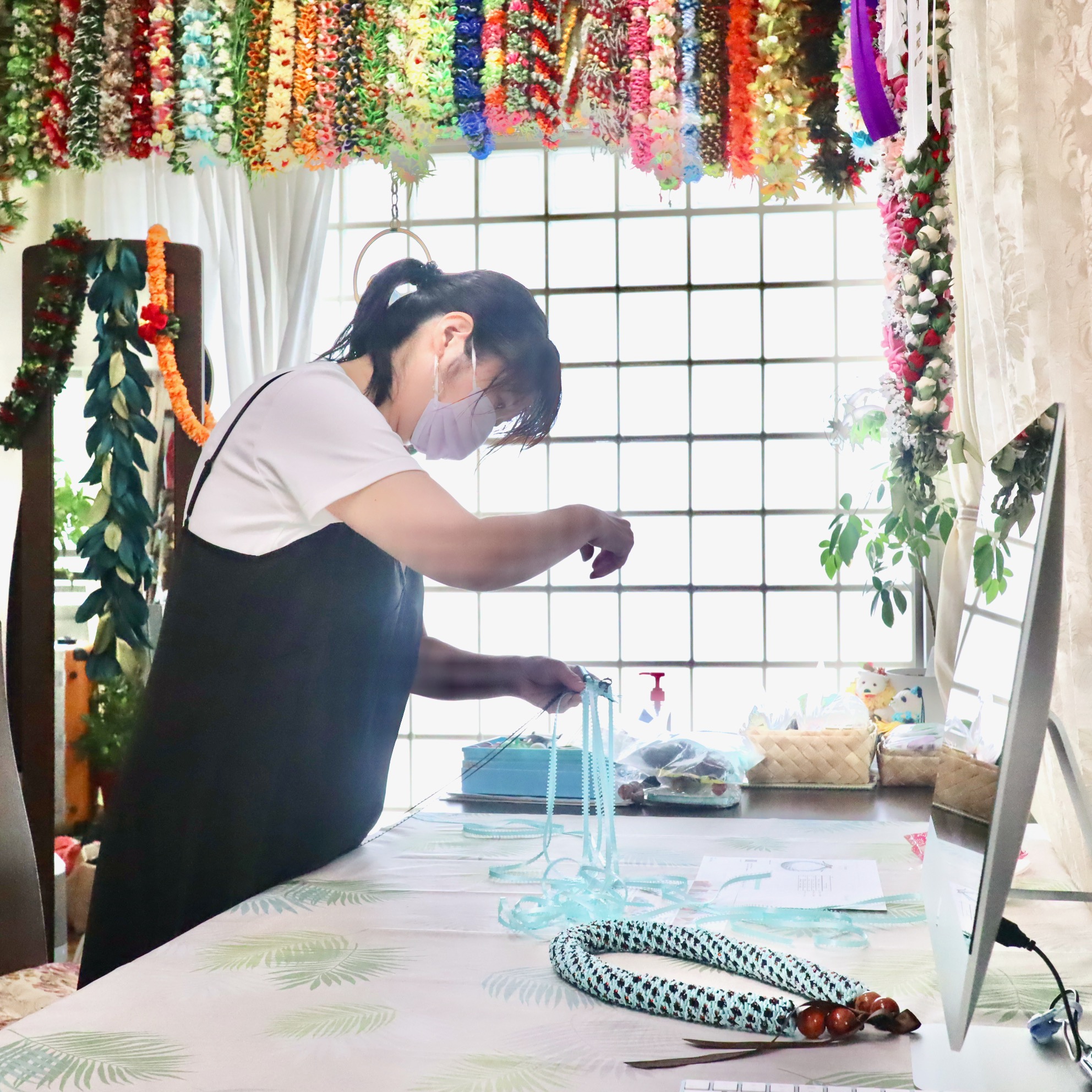 プルメリア&ルリマツリ|レイポオ (Bloomin)|リボンレイ 教室 東京