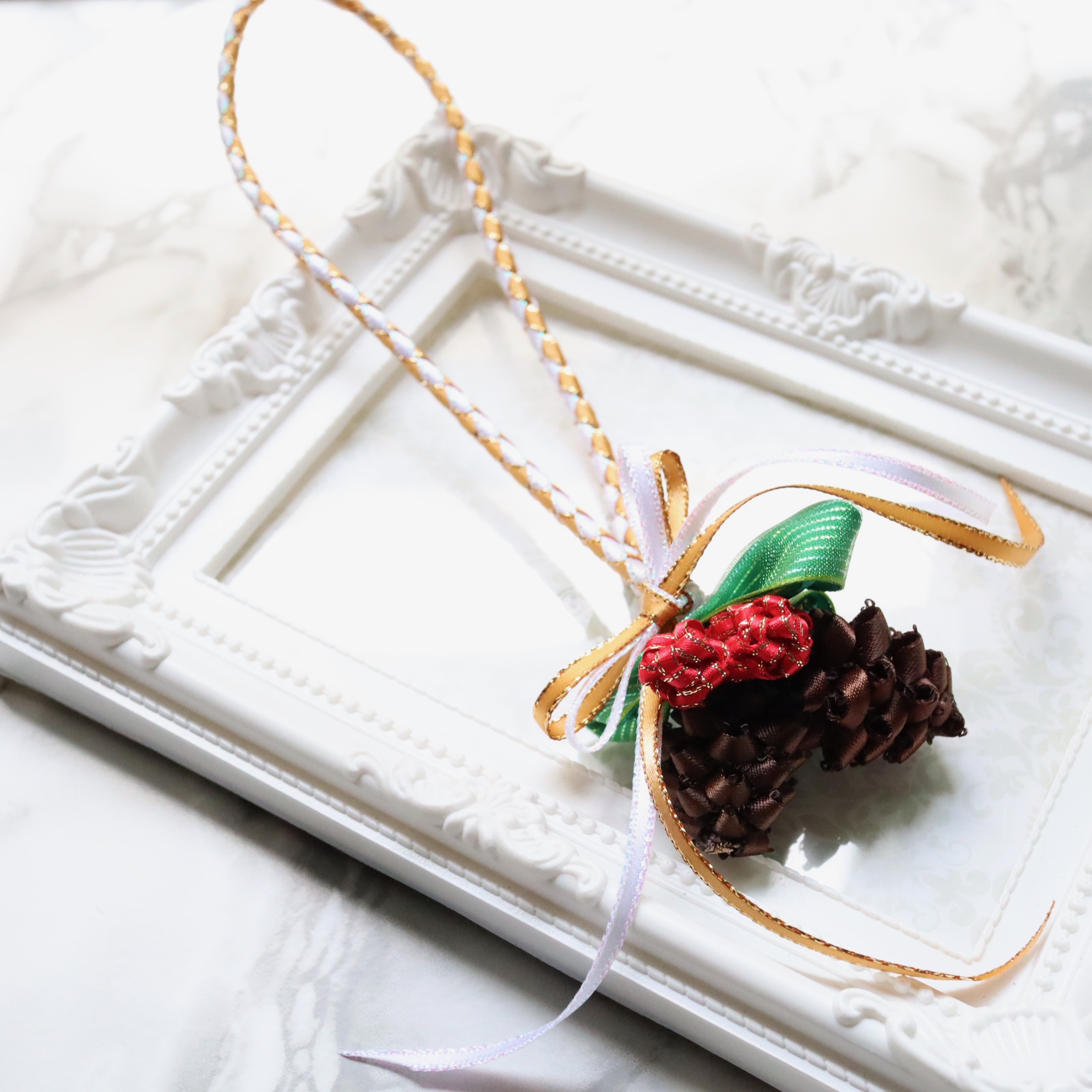 パインコーンズチャーム 松ぼっくりのチャーム|Bloominリボンチャーム作品紹介