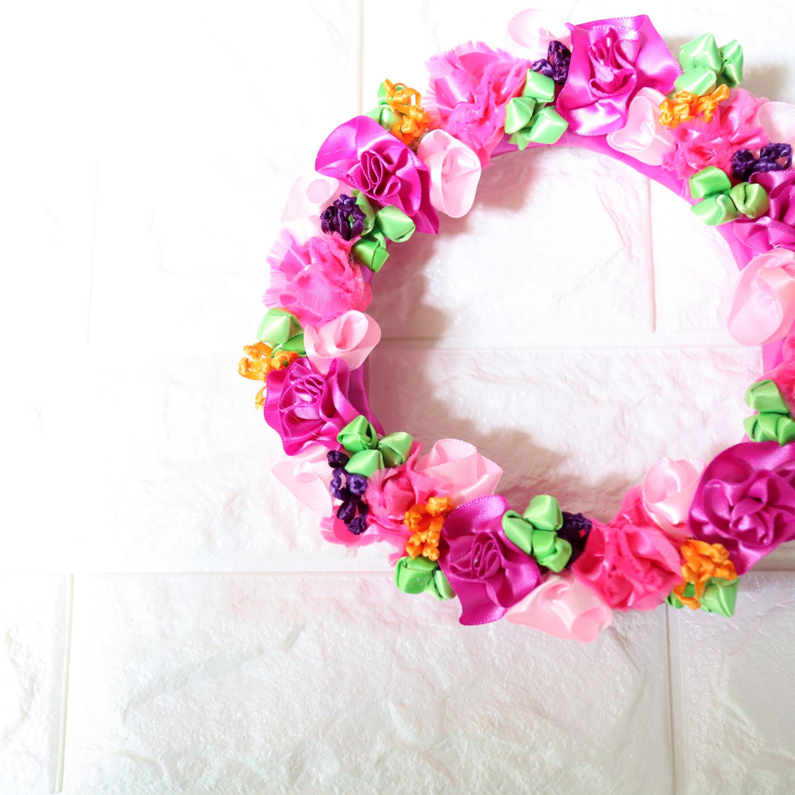 フラワーリース|リボンリース (モアナコア)|リボンレイ 教室 東京