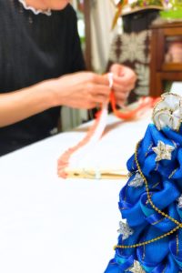 ボウ(飾りリボン)の作り方も説明して、一緒に作りました。