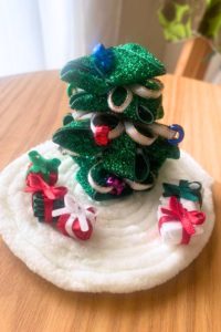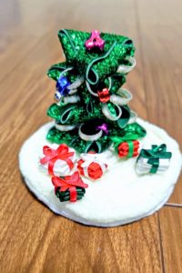 キラキラリボンで作るミニツリー。