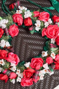 大きなバラのリボンレイ。